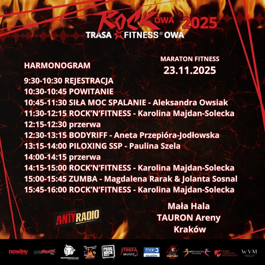 Kraków – w niedzielę, 23 listopada 2025 roku, Mała Hala TAURON Areny Kraków wypełni się potężną dawką rockowej energii i sportowej pasji. Tego dnia odbędzie się wyjątkowy maraton fitness, który rozgrzeje Twoje ciało i duszę niczym porządny rockowy koncert.